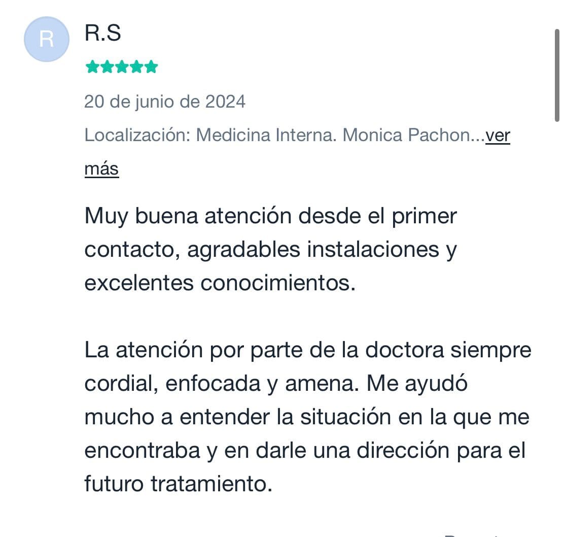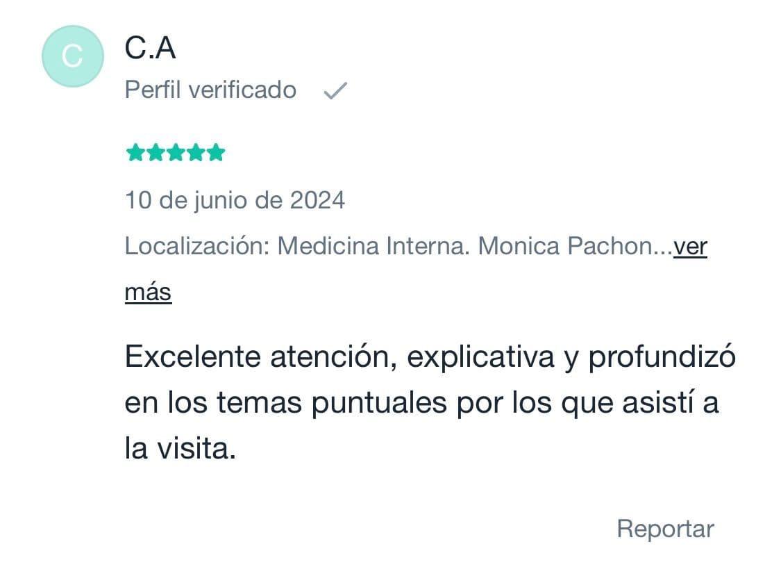 Escucha lo que nuestros pacientes tienen que decir sobre su experiencia con la Dra. Mónica Pachón Quevedo y cómo ha transformado su cuidado de la salud.